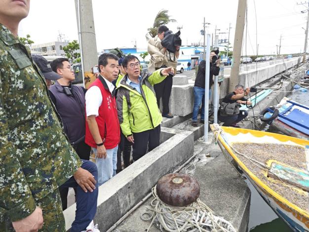 而面對楊柳颱風考驗,黃市長親自前往七股區西寮檢視防汛整備情形,並指示水利局立即完成3台移動式抽水機增佈,隨即前往將軍區青鯤鯓碼頭視察碼頭護欄加高情況及倒伏閘門運作情形。針對鯤溟里周里長反映老舊結構滲水問題,水利局則立即啟動搶修作業打設鋼板樁圍堰作業,將以最快速度進行應急補強。