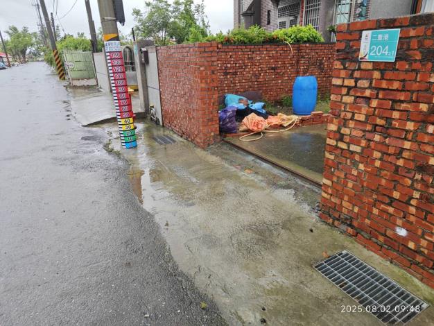 受西南氣流影響,8月2日南部地區降下豪大雨,當日清晨北門區觀測單小時最大雨量達46毫米,3小時累積雨量更突破100毫米。當時正逢文山里二重港小排滿潮,若貿然開啟閘門恐導致外水倒灌社區。北門區公所及水利局人員嚴密監控水情,待上午9時外水水位下降後,立即啟動閘門操作,社區積水於9時30分全數退去,應變得宜、防汛有效。