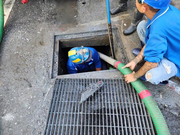 水利局補充,清理目標側溝寬度狹窄,人員需緊縮身軀鑽入管道,作業艱辛,但所有支援人員均秉持專業及作業安全之精神,於出發前完成安全教育與裝備檢點,確保以最專業、最安全狀態投入支援。