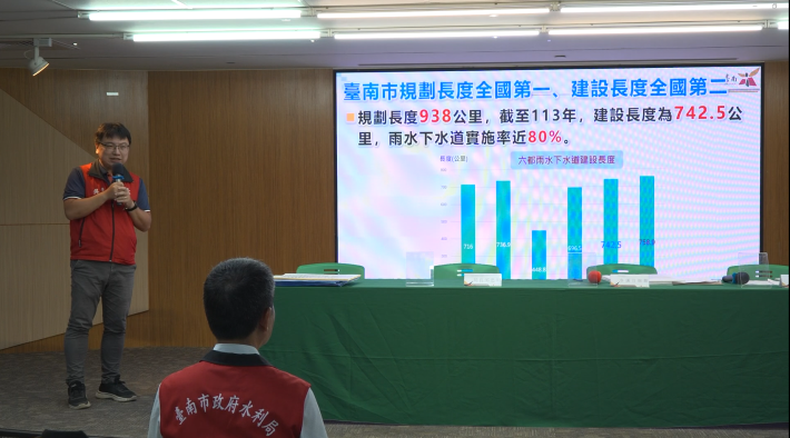 水面積9,900公頃,113年凱米颱風淹水面積335公頃,114年8月2日西南氣流帶來豪雨降雨量24小時398.5毫米,1小時103.5毫米,均為500年一遇之強降雨,淹水面積135公頃,淹水面積大幅減少。此外六都雨水下水道長度比較,台南市下水道建設長度全國第二,皆是展現臺南市努力治水成果,其中台北市716公里,新北市 736.9公里,桃園市 448.8公里,台中市696.5公里,台南市742.5公里,高雄市 758.9公里。市府重申,極端氣候時代,地方政府肩負第一線防災責任,臺南市面對龐大排水治理需求,將持續與中央機關協力推動工程改善,並以謹慎務實態度回應社會期待,守護市民安全與城市韌性。