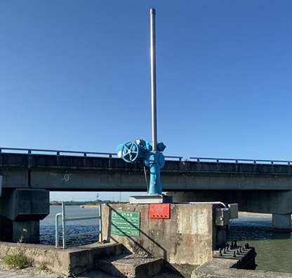 面對日益嚴峻的極端氣候挑戰,黃偉哲市長督促南市水利局積極落實防汛整備。除例行性維護工作外,也持續檢視水閘門使用狀況,並針對老舊設施逐步改善更新,避免因設施不良而造成防汛缺口。北門地區因為先天地勢低窪,遇上極端氣候及潮汐容易產生海水灌入排水渠道。其中,北門區38號水門因土建結構老舊,閘門水密性不佳,影響水門擋水功能,有海水倒灌危害。為此,市府籌措1,200萬元辦理「北門區38號水門應急工程」,以減低沿海地區淹水風險,保護居民生命財產安全。